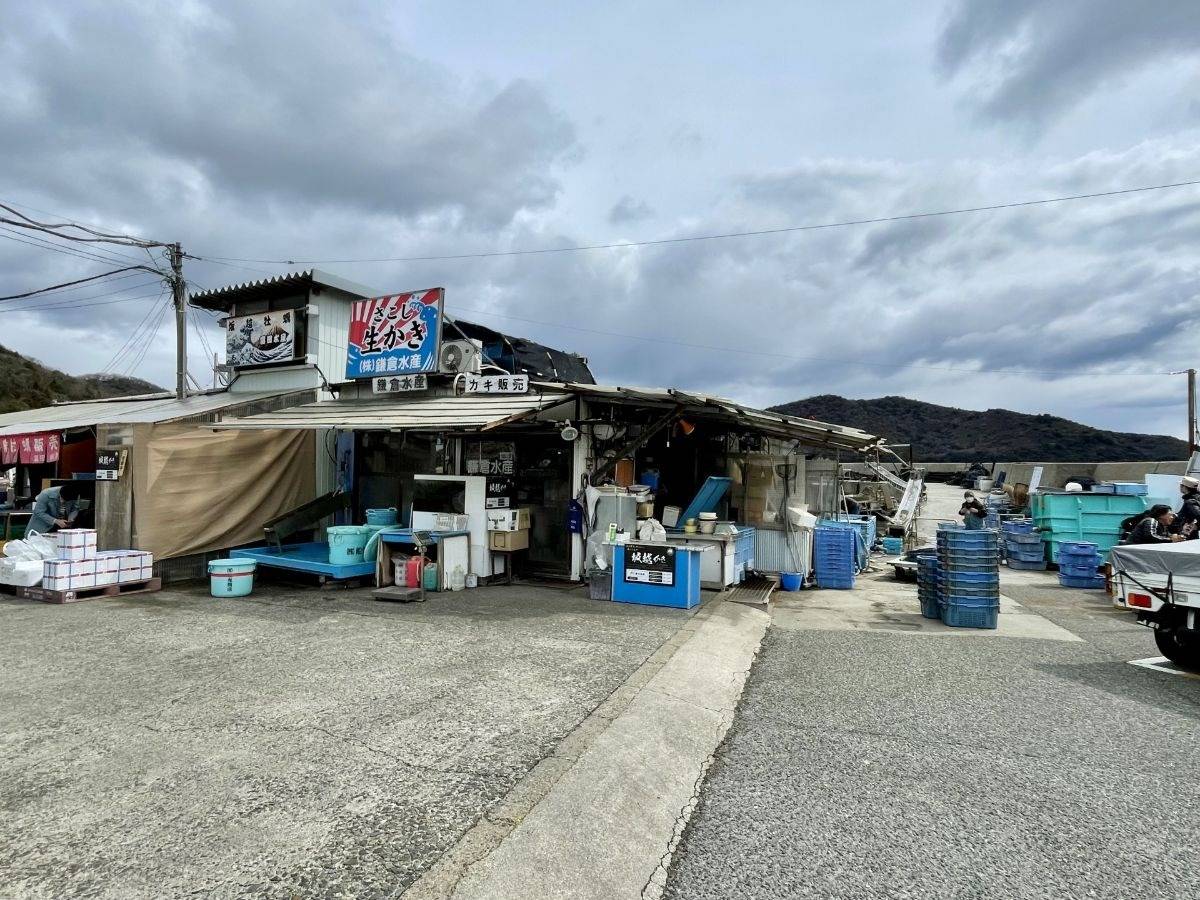 5. 牡蠣小屋の雰囲気と漁港の風景